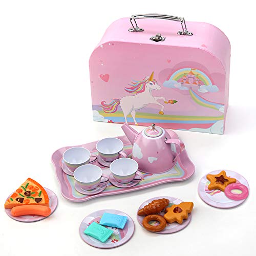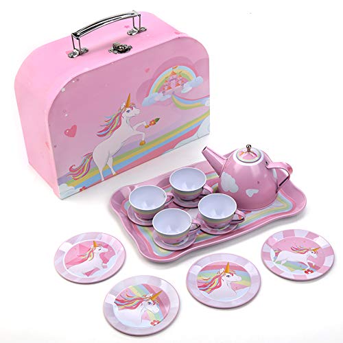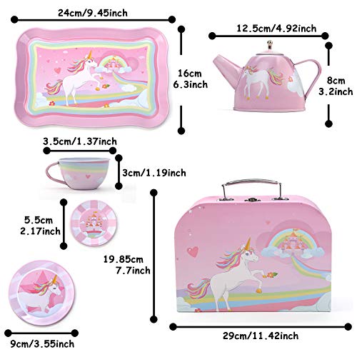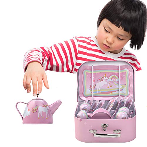 - 【Good quality】Tin tea set unicorn is made of high-quality metal materials, non-toxic and durable, easy to store and transport. Tea party set for children unicorn complies with toy safety standards, has passed safety tests, and has a smooth round edge to ensure that children can safely enjoy the fun of playing.