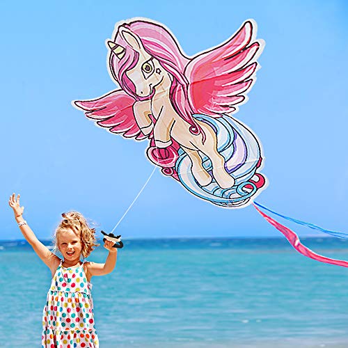 - 💖 COOL AND BIG UNICORN KITE TOYS- Designed with an awesome and novel pattern, this huge and magical unicorn kite is bound to give your little ones an unexpected surprise. It will be attractive and grab everyone’s attention when you fly it at the beach, the park, your backyard, or anywhere else. This is perfect for any child: boys or girls.