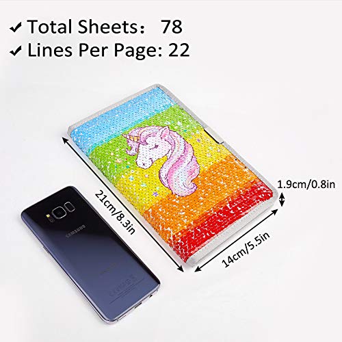 - ✬Material: paper and sequins; Color: Rainbow Unicorn/Silver; Size: 21x14x1.9cm(L*W*H),78 pages with lines, 70 g/page, classic A5 office notebooks; Package Include: 1 PC Sequin Unicorn Notebook