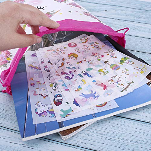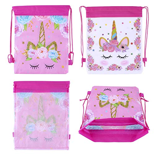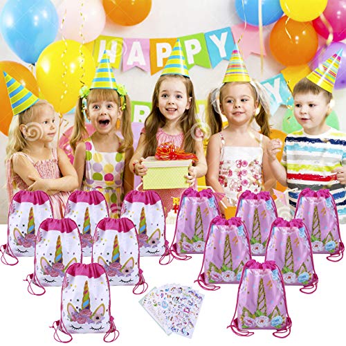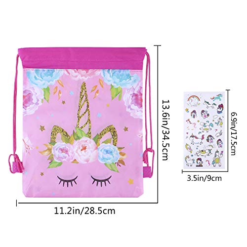 - Unicorn Themed Party Supplies: Our 12 pack unicorn drawstring bags are designed with two different unicorn pattern, bright and vivid colors, each pattern is 6pcs bags. Comes with additional bonus, 6 sheet unicorn sticker in one package.