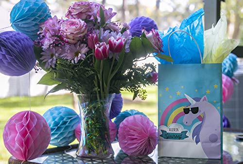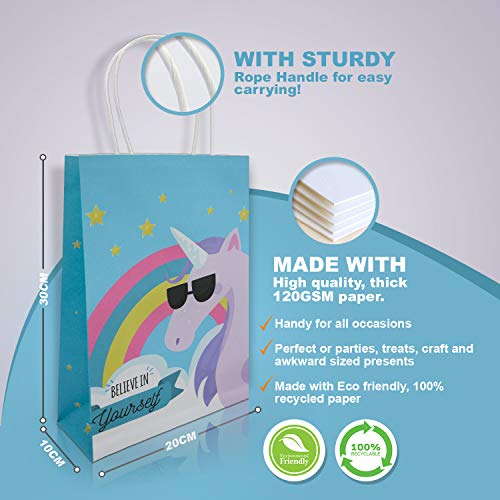 - 🎁 Impress friends and family with the cool Unicorn design, complete with inspirational words of encouragement, "Believe in Yourself". These bags are made with a high quality 120gsm thick paper, kind to the environment as 100% recyclable. Suitable for all boys and girls of all ages
