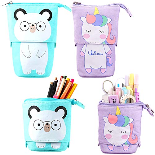 2 PC Unicorn & Spectacled Bear Stand Up Pencil Case | Pen Pot Holder | Organiser