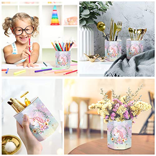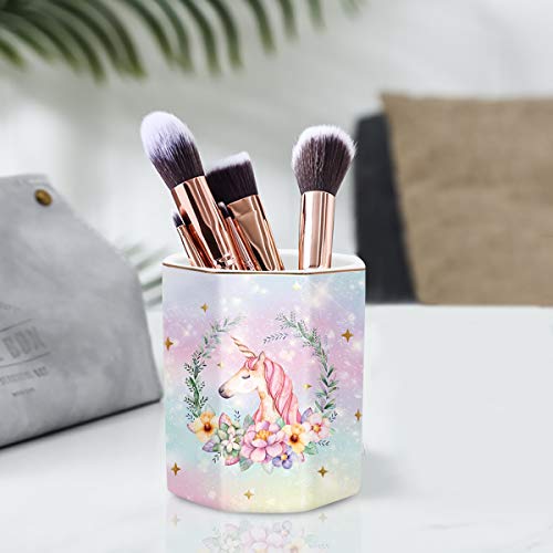 - 💖【Pen Holder for Desk Large Capacity】Measures 3.9" H, 3.3" W, 13 ounce weight, crafted from durable ceramic, it’s durable and sturdy. Unique cute unicorn design decor, upgrade style, larger capacity, more sturdy, the unicorn print has sleek and sophisticated design which will give your table or desk such a classy touch.