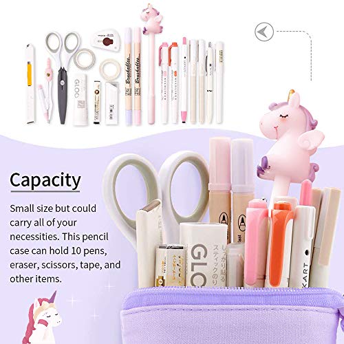 Details: NETUME Telescopic Canvas Stand Up Pencil Case /Pen Holder Pot/Makeup Bag for Girls,Kids,Boys,Cute Cartoon Sliding Pencil Case Organiser for Birthday Christmas Gift We provide sliding pencil case that can be used as a portable pencil holder case, cosmetic bag, and storage bag to meet the needs of children for school or daily travel. Features: Our stand up pencil case has a large capacity and has three concealed pockets for convenient storage of stationery, cosmetics, small objects, etc. Our pop up pencil case is flexible, easy to carry and easy to access. Our pencil case is beautiful and cute, which can cultivate good habits of organizing, storing, studying and working. It is a good gift for children, teenagers,teacher Specifications: Brand: NETUME Material: Canvas Size: 17x12x5.2cm Colour: Purple Weight: 20 g Package included: 1 x Stand up Pencil Case
