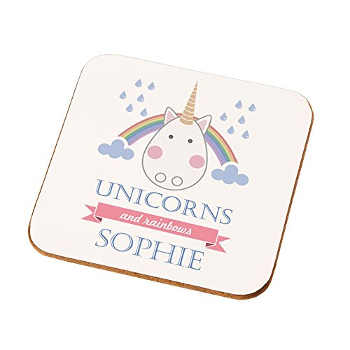 If you're looking for personalised gift ideas for a unicorn lover then you have most definitely come to the right place! Here at all things unicorn we have a wide range of personalised gifts and right now you are viewing a very cute unicorns and rainbows drinks coaster which can be made personal to include the name of the recipient. The coaster features a lovely design with clouds and rainbows, with the unicorn face in the middle. This is a high gloss durable coaster which can be wiped clean easily and enjoyed for a long time. It measures approximately 9cm x 9cm, so it's the perfect size to place those hot drinks, cup of tea / coffee, hot chocolate or a cold drink whilst protecting surfaces. It has a wooden back.