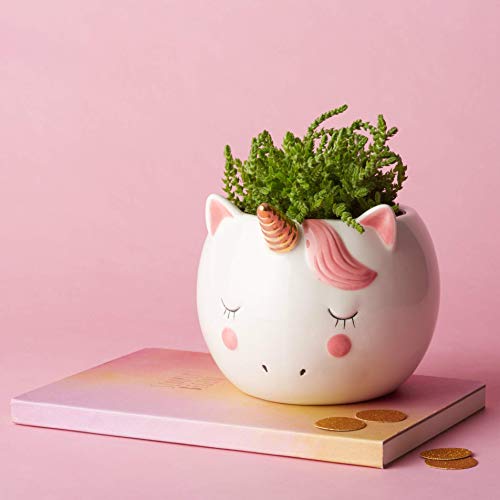 Details: Pair your favourite plant or succulent inside this adorable planter and pay homage to your magical side. Sweet Unicorn Planter Features: Material: Porcelain Packaging: Colour Box Size:7.5"L x 4" W x 4.25"H