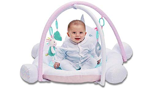 - This magical playmat is ideal for helping your baby to rest and play as they boost their sensory development. Designed in the shape of a unicorn the luxuriously padded and super soft materials are soft for your baby to touch and the detachable hanging toys can be played with on the mat, or put on a pushchair. The interactive toys are great for stimulating baby's senses and improving their hand-eye co-ordination.