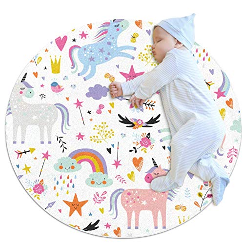 Unicorns Round Floor Mat | Washable Rug | Multi Coloured