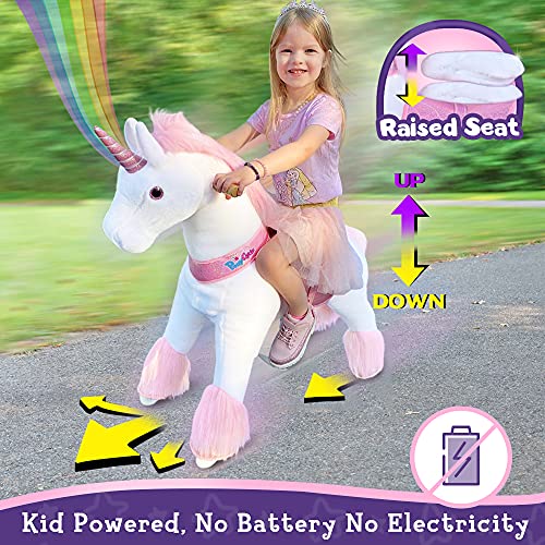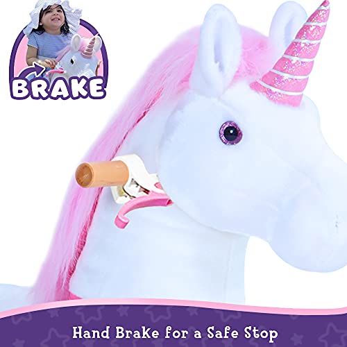 Ride On Unicorn | PonyCycle Official | Walking Animal Plush Toy | White & Pink