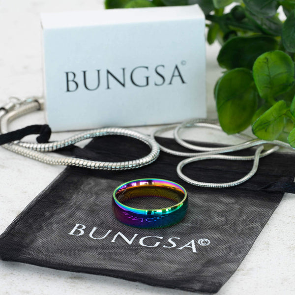 - COMBINE WITH VARIOUS BUNGSA JEWELRY: At Bungsa we sell more than sparkly rings. We also sell stylish earrings, thin chains, pendants, bracelets, and jewelry sets. Many of these fashion accessories come in different metal options such as gold, rose gold, silver, rainbow, and black. We're proud to sell quality box jewelry, both large and small.