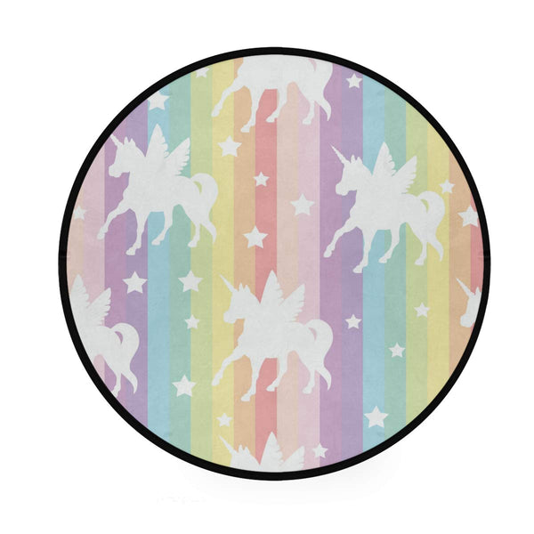 Unicorn Rainbow Stars Kids Round Rug For Bedroom Playroom - Round 90cm