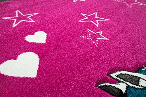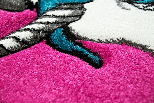This Pink Unicorn "In the Sky" Rug measures 80x150cm and contains a vibrant pink theme making this a top choice for a girls play room, bedroom or nursery. Best suited to a room whereby adding a large splash of colour can act as a centre piece to the bedroom. Lovely design with a unicorn, stars and clouds theme.