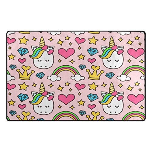 Cartoon Unicorn Emoji Style Rainbow Durable Carpet Rug for Child's Room 78 x 50 CM