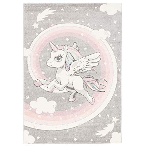Children's Rug | Unicorn Design | Pastel Grey Light Pink | 5 Sizes