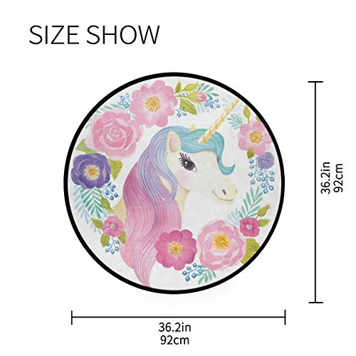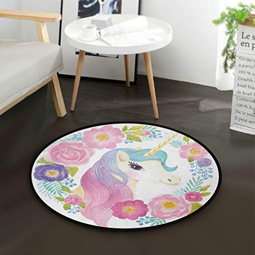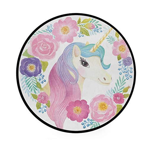 Pretty Unicorn Flower Round Rug 3' Diameter(92 cm) Pastel Coloured