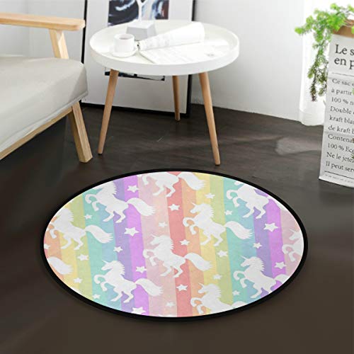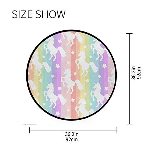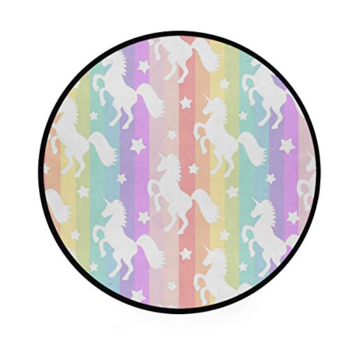 Rainbow Striped Unicorn Round Rug 3' Diameter(92 cm)