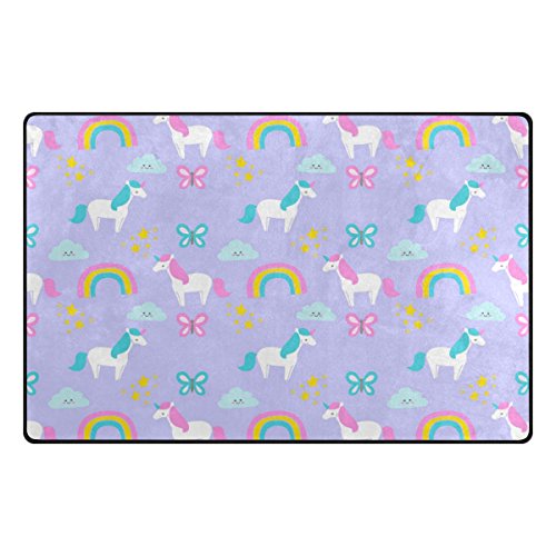 Super Soft Modern Unicorn, Butterfly and Rainbow Rug for Children's Bedroom, Playroom, Nursery 31 x 20 Inch