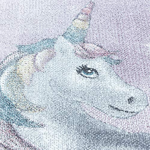 Unicorn Rug | Soft & Fluffy | Grey, Violet, Purple | 80x150 cm | Girls Bedroom