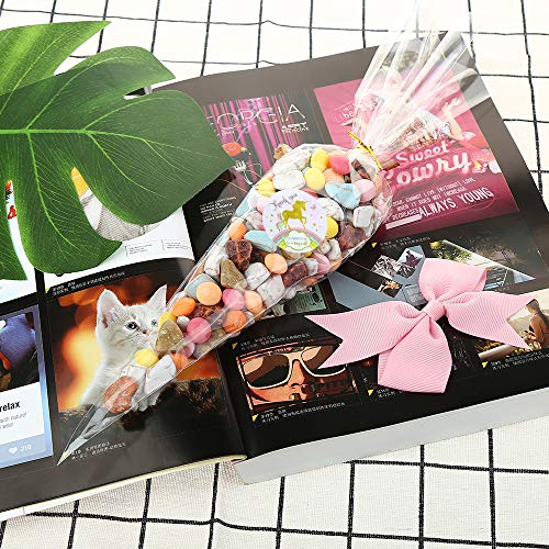 Details: LOKIPA 50pcs Clear Cone Bags with Gold Twist Ties and 50pcs Unicorn Thank You Stickers perfect for unicorn themed party, gift packing, ideal party accessories as party bags gifts, wedding birthday party favors and displays. These cute unicorn thank you stickers with faux glitter design make they looks Cute on gifts bags ,they can seal party invitation envelopes, decorate your party favors, add to gift bags, scrapbook, gift tags, candy box favors, gift box and more! Package include: 50*cone bags 50*gold twist ties 50*unicorn thank you stickers