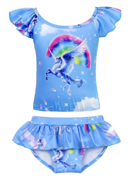 - Girls cute two-piece unicorn swimsuit, the colour is bright and lasting