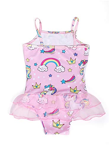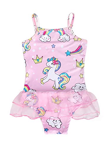 - One piece swimsuit, spafhetti shoulder straps, unicorns printed, triangle briefs with tutu skirt, offer a flattering look;