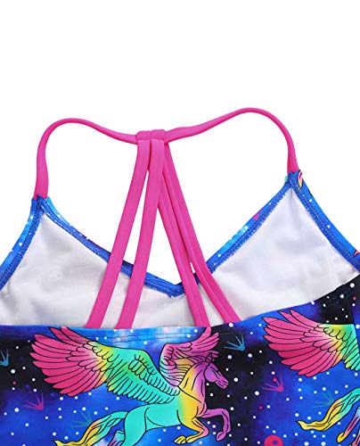 Unicorn Tankini Set Tassel Two Piece Swimsuit, Blue