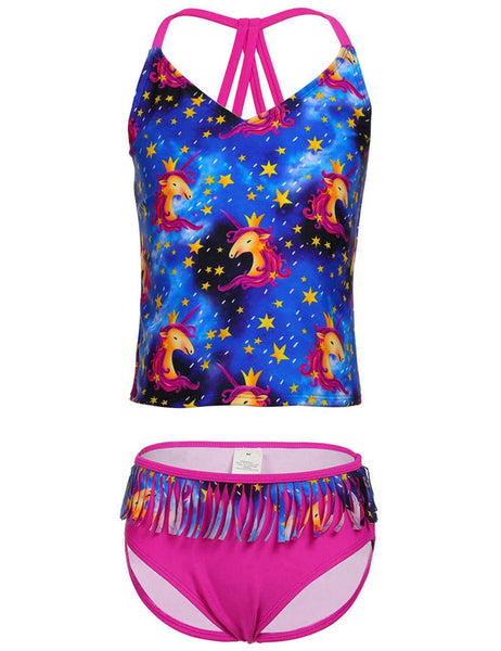 Unicorn Girls Bikini Tankini Set Tassel Swimming Costume Swimsuit UK Age 6-14 Years