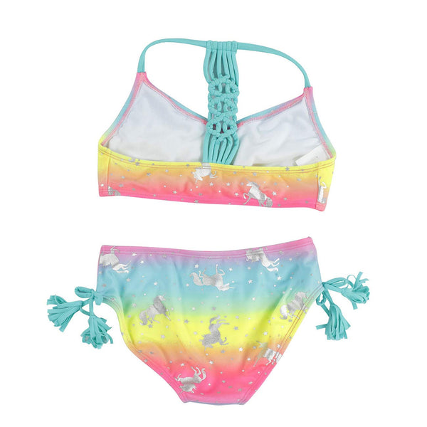 - Two pieces cute girls Unicorn swimsuit, Rope Weaving back swim top + bottoms.
