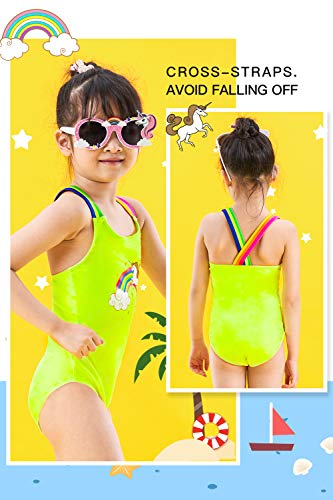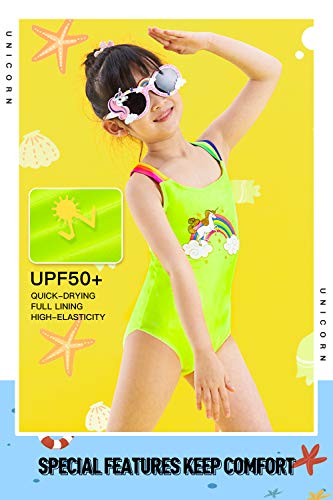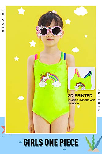 IKALI Girls Unicorn Swimming Costume One Piece, Fluorescent