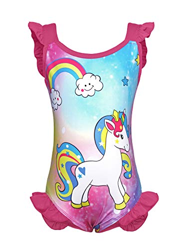 Details: Jurebecia Unicorn Swimming Costume Girls One Piece Swimsuit Toddler Kids Swimwear Ruffle Swimming Suits Beach Bathing Suit Rose Red 9-10 Years