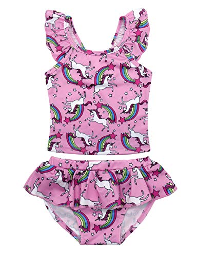 Details: Jurebecia Girls Swimming Costume 2 Piece Unicorn Swimsuit Tankini Swimwear Bathing Suit Bikini Swim Separates Beachwear for Kids