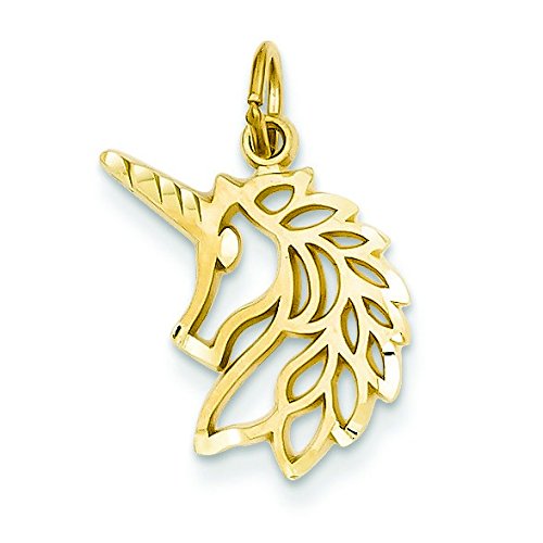 Details: 14ct Yellow Gold Unicorns Head Pendant - Measures 20.7x14.8mm - .9 Grams in 14ct Yellow Gold - Product Attributes: - Filigree - Diamond-cut - JewelryWeb Style: QTP65640NC - FREE gift-ready jewelry box - This Item Does Not Ship With a Chain
