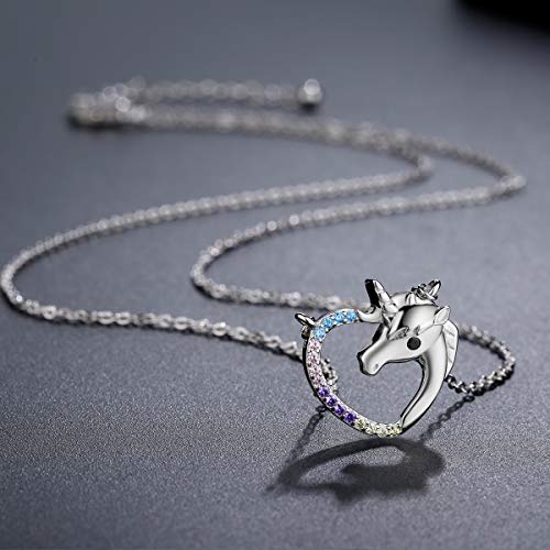 - ❤ Feature: The 925 sterling silver can keep shining for a long time and will not change color, the colorful zircons are glittering and bringt. The chain is adjustable, you can choose length 38.5cm(15.2inch), 42.5cm(16.7inch), 45cm(17.7inch) or length between 45cm(17.7inch) and 48cm(18.9inch). You can order the unicorn Earrings together in our store, wearing the unicorn necklace and earrings, you will be must the focus among people.