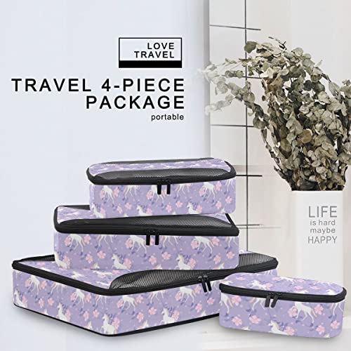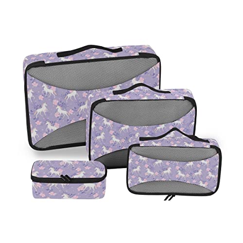 Unicorn Packing Cubes For Suitcases | 4 Set | Travel Luggage Organiser Packing Cubes