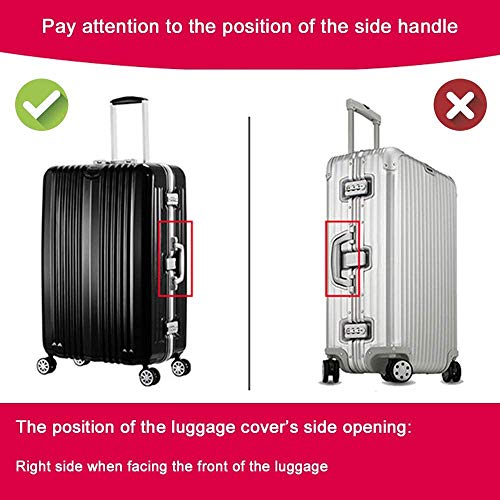 - ✈【FEATURES】Double opening at the top, zipper and buckle at the bottom, 1 opening at the side, Trolley case cover is only right handle opening(Facing in the front of your luggage), so please make sure your luggage with right handle only,left handle style luggage can't use this cover.