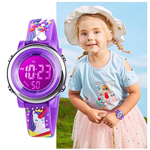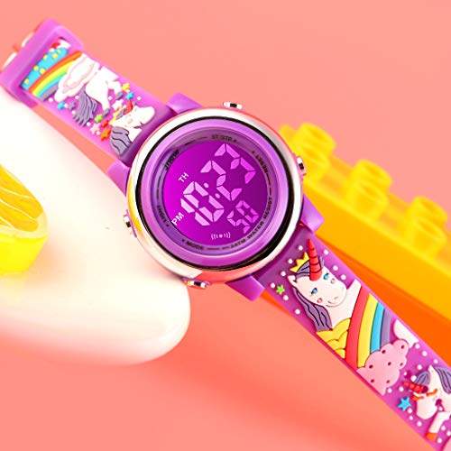 - Upgrade Innovation: 3D Unicorn cute cartoon strap design with 7 colorful LEDs digital display. Each cartoon image is lively and interesting, 7 different led lights changed, all that make kids very vigorous and happy.