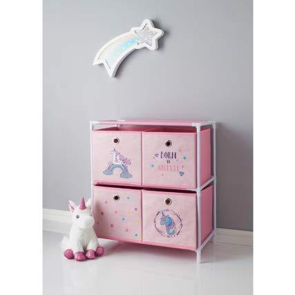 Unicorn 4 Drawer Chest Drawer Girls Children Bedroom Toy Storage
