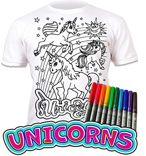 Colour-in Unicorn T-Shirt with 6 Non-Toxic Washable Magic Pens