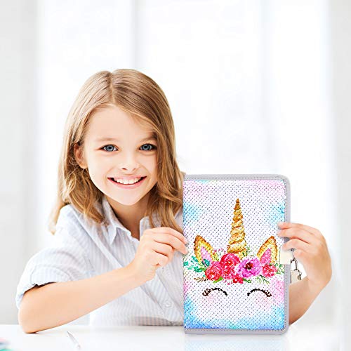 - 【Unicorn Element】The cover of this sequin girls diary is printed with charming unicorn pattern, which is popular with unicorn lovers, especially kids.