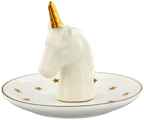 Stargazer Unicorn White Trinket Dish With Gold Stars