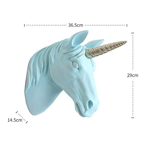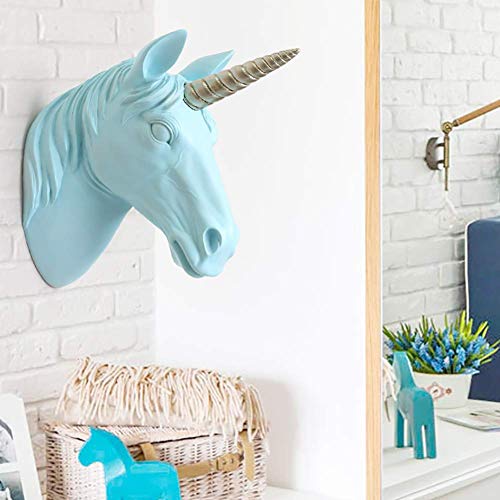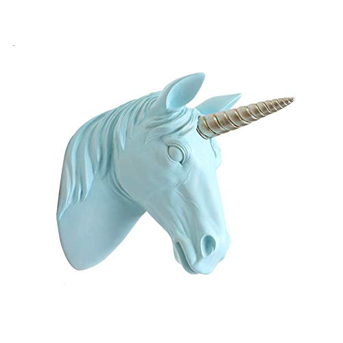 Barm Unicorn wall mount unicorn head fake resin sculpture animal head wall decoration, ready to hang blue 14.5x29x36.5cm (6x11x14inch)