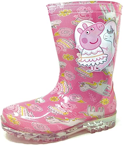 Details: Girls Peppa Pig Wellington Boots (Wellies) featuring Peppa and a unicorn. Official Licensed Product. Allow your little ones to enjoy endless hours of fun playing out in the rain whilst keeping their feet dry or warm in the snow.
