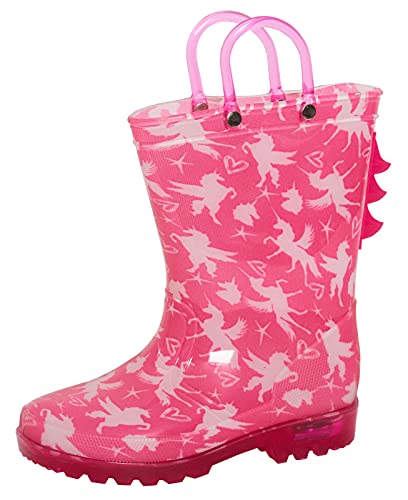 Kids Light Up Unicorn Wellingtons Boots | Children's Pink Wellies With Handles