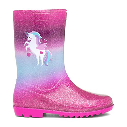 Kids Pink & Blue Unicorn Glitter Wellington Boot | Child | Zone