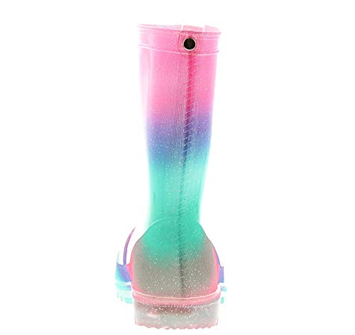 - Younger Girls Cute Light Up Wellington Boot With Rainbow Pattern To The Upper.